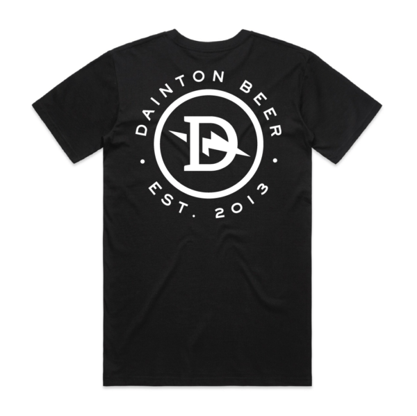 Plain and simple. Black tee with small print on the front & logo on the back. Let the beer do the talking.
